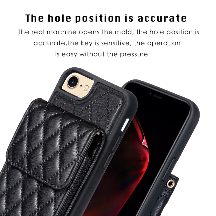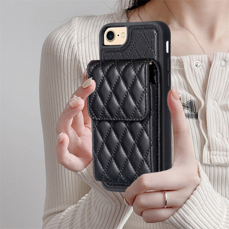 Estuche de teléfono iPhone SE 2022 SE 2020 7 8 Cuero Rómbico con Billetera Vertical (Negro)