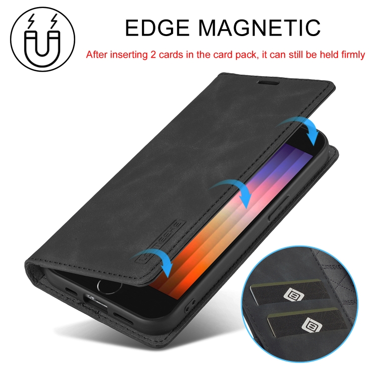 Funda de Cuero de Microfibra Lc.Imeeke para iPhone 16E con Magnetismo Fuerte (Negra)