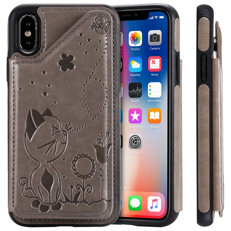 Estuche protector para iPhone X Cat Bee con patrón en relieve, a prueba de golpes, ranuras para tarjetas y marco de fotos (Gris)