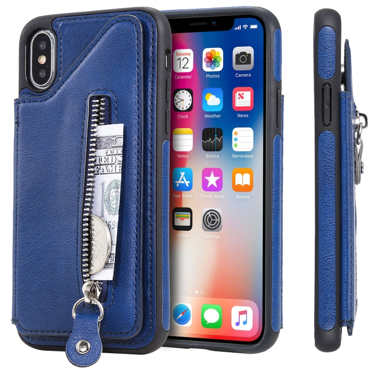 Funda Protectora iPhone X Doble Hebilla Cremallera a Prueba de Golpes (Azul)