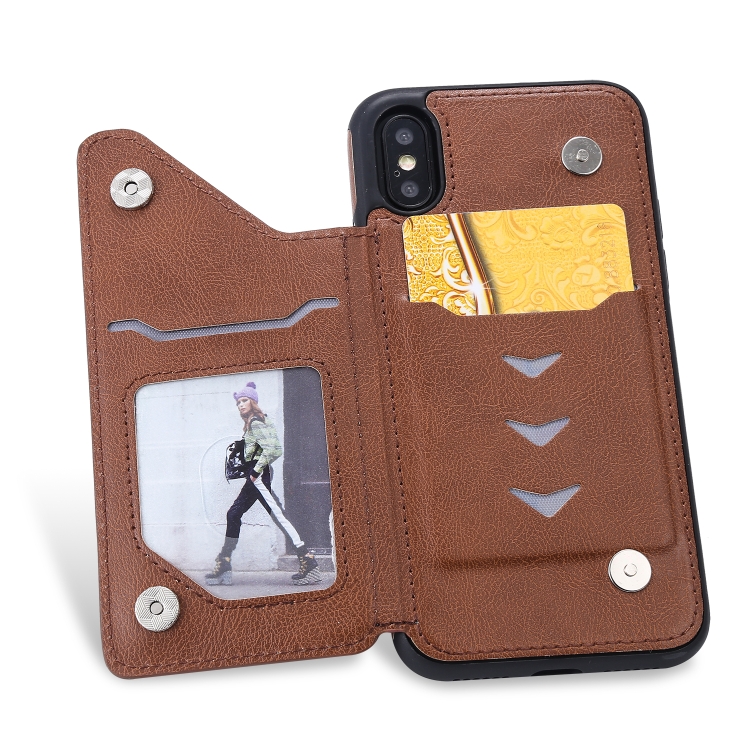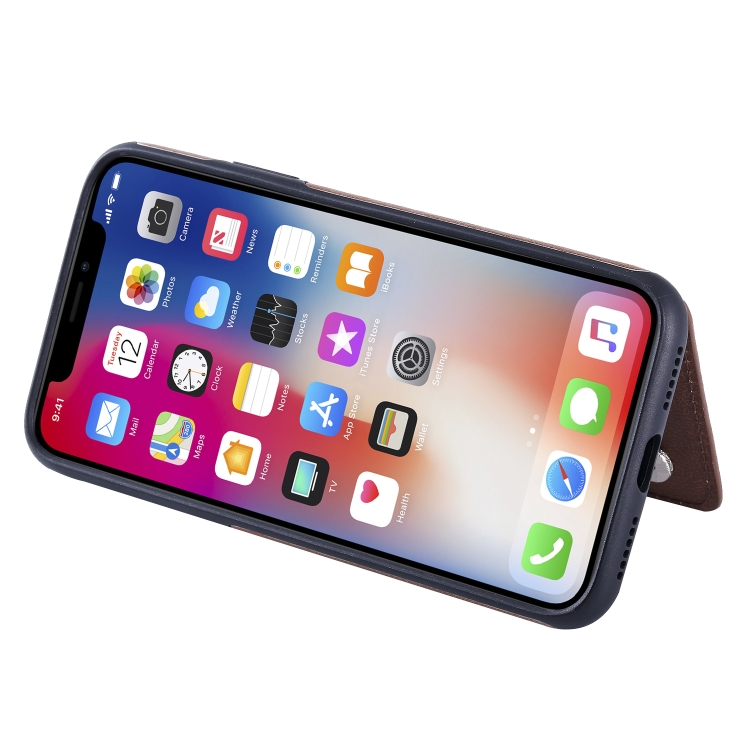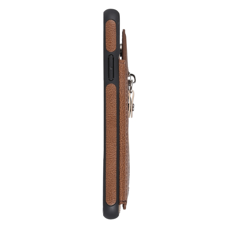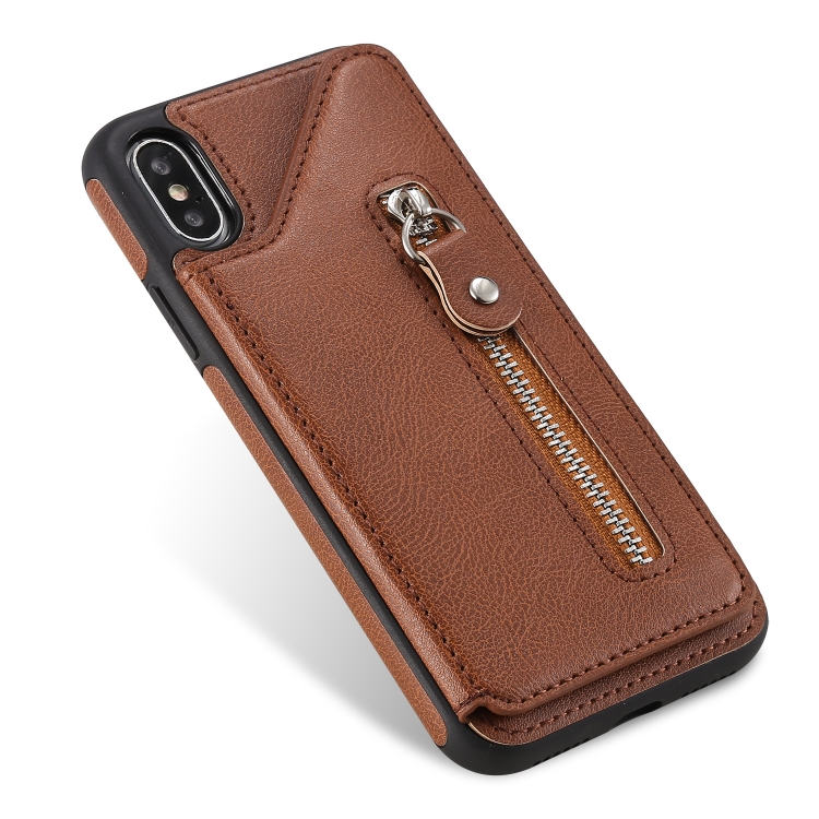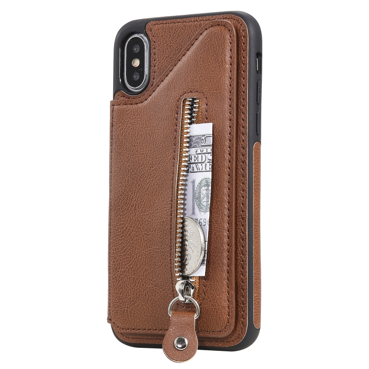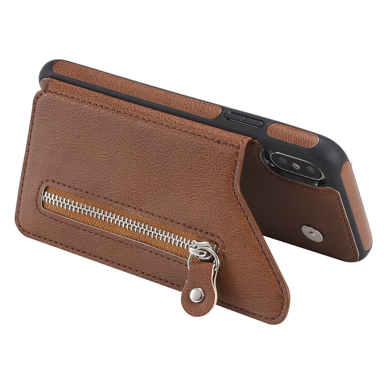 Funda Protectora para iPhone X Doble Hebilla Cremallera a Prueba de Golpes (Marrón)