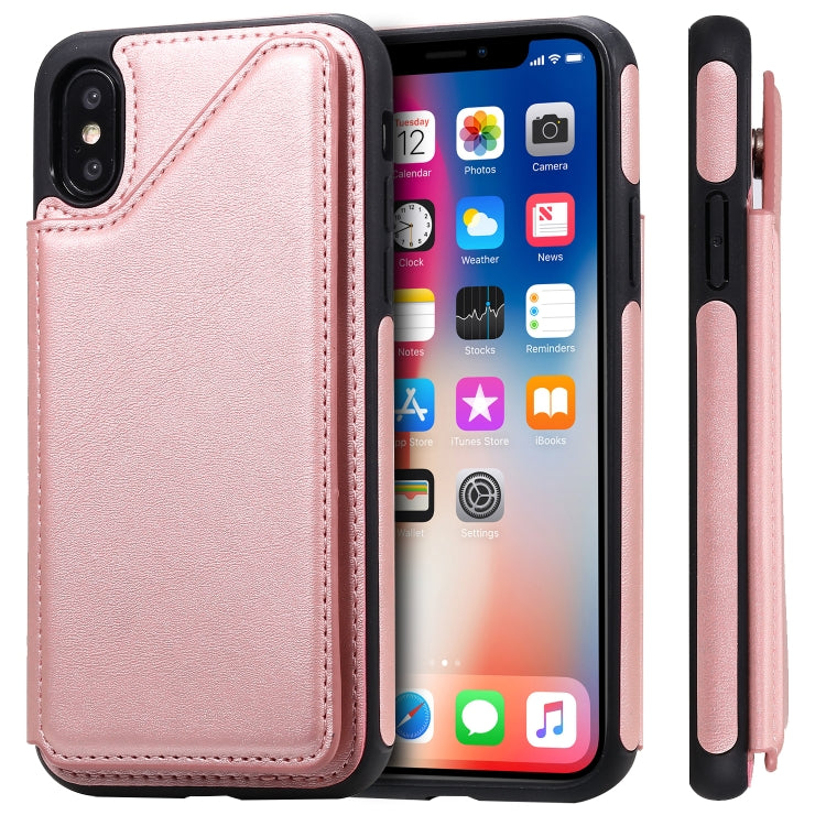 Funda Protectora iPhone X Textura Pantorrilla Soporte Ranuras Tarjetas (Oro Rosa)