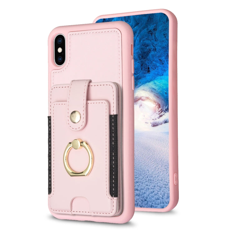 Funda para Teléfono Bf27 para iPhone X Xs con Soporte para Tarjeta y Anillo de Metal (Rosa)