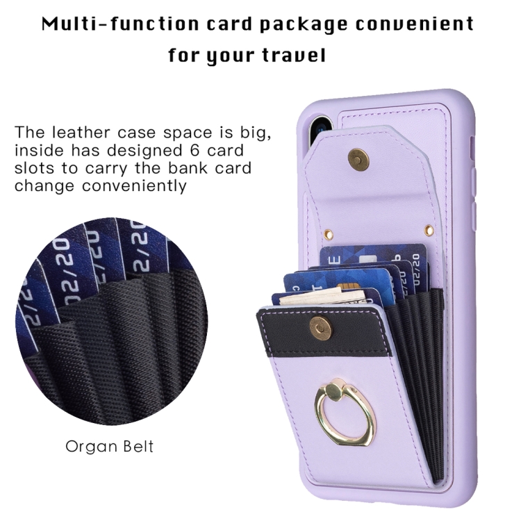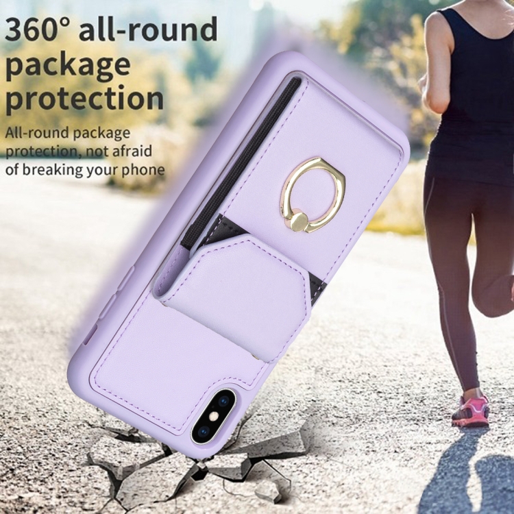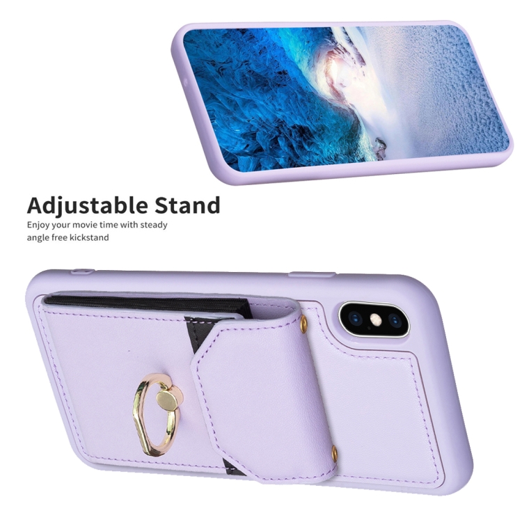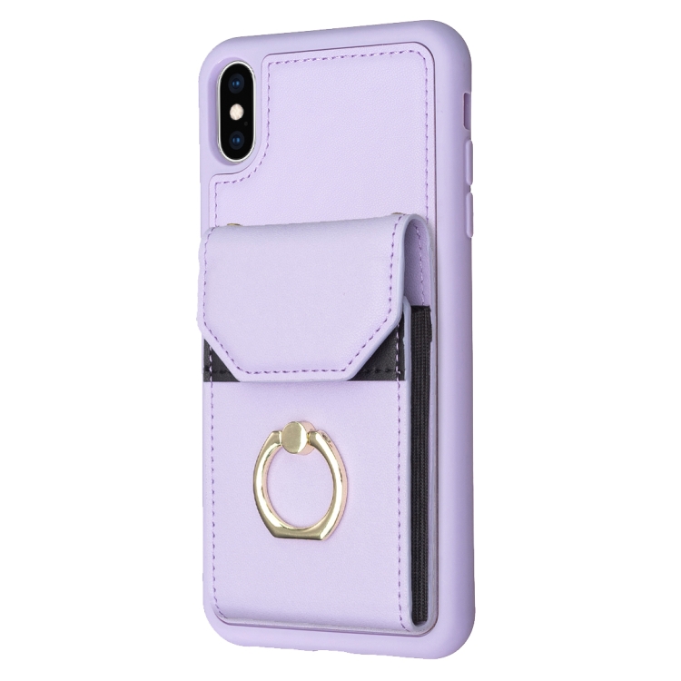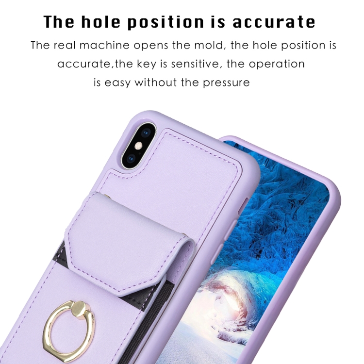 Funda para Teléfono iPhone X / Xs Bf29 con Soporte para Anillo y Bolsa para Tarjeta de Órgano (Púrpura)