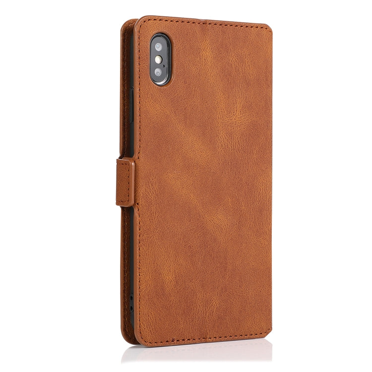 Estuche de Cuero iPhone X / Xs Cierre Magnético Tapa Horizontal Soporte Ranuras Tarjetas Marco Fotos Billetera (Marrón)