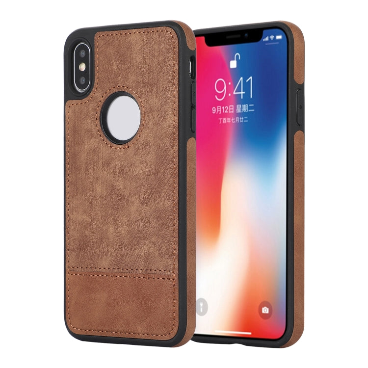 Funda para iPhone X / Xs Empalme Costura Caja de Teléfono de PU con Recorte Hueco (Marrón)