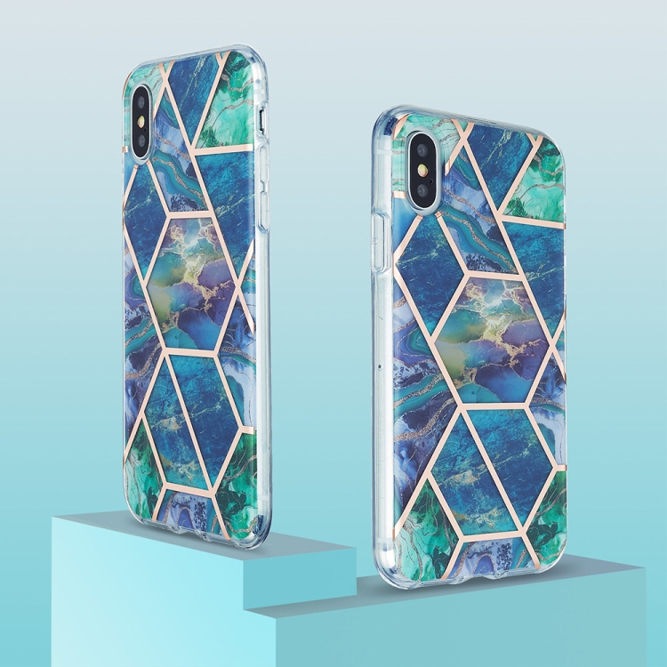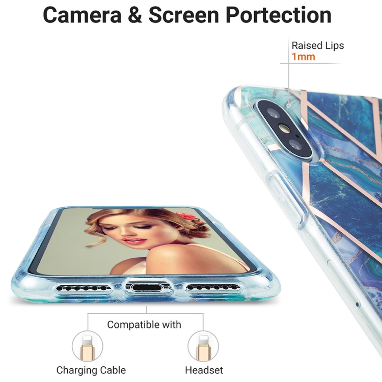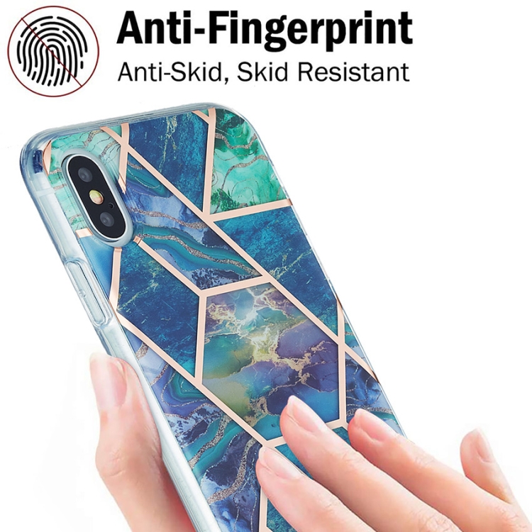 Estuche Protector TPU para iPhone X Xs Patrón Mármol Galvanizado 3D (Verde Oscuro)