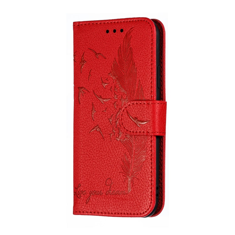 Funda de Cuero para iPhone X Xs Feather Pattern con Tapa Horizontal Billetera Soporte Ranuras para Tarjetas (Rojo)