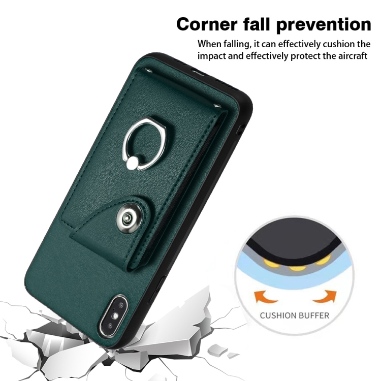 Funda para Teléfono iPhone X Xs con Soporte para Anillo y Bolsa para Tarjeta de Órgano (Verde)