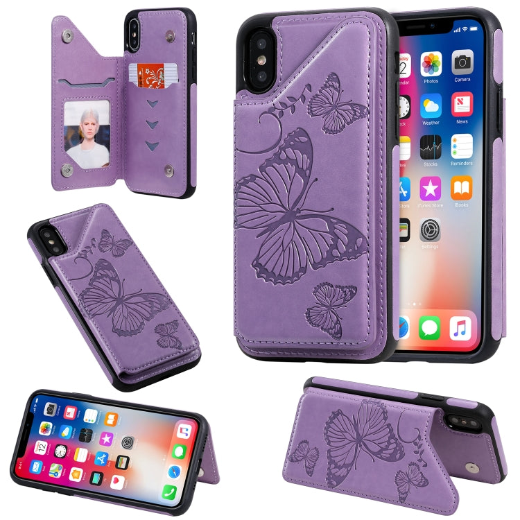Funda Protectora para iPhone X y Xs con Soporte, Ranuras para Tarjetas y Marco de Fotos (Púrpura)