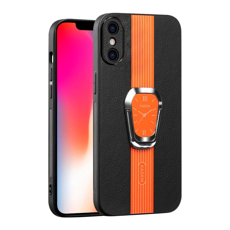 Funda Trasera de Cuero Litchi Magnética con Soporte para iPhone X / Xs (Naranja)