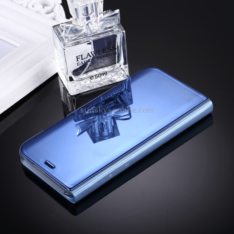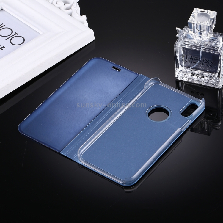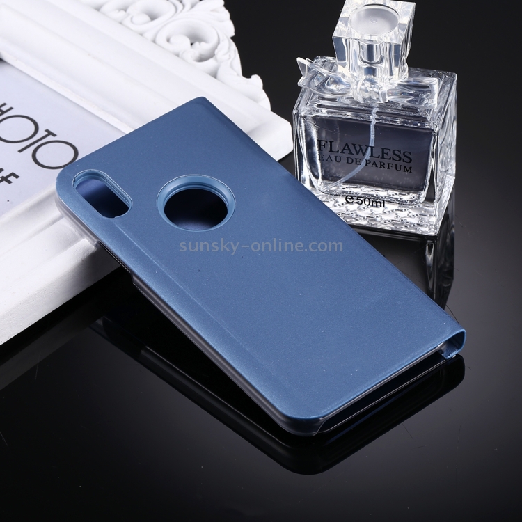 Funda de Cuero para iPhone X Xs Galvanoplastia Espejo con Tapa Horizontal y Soporte (Azul)