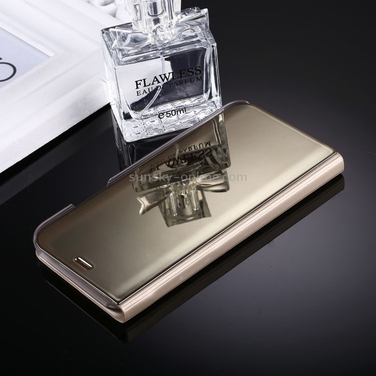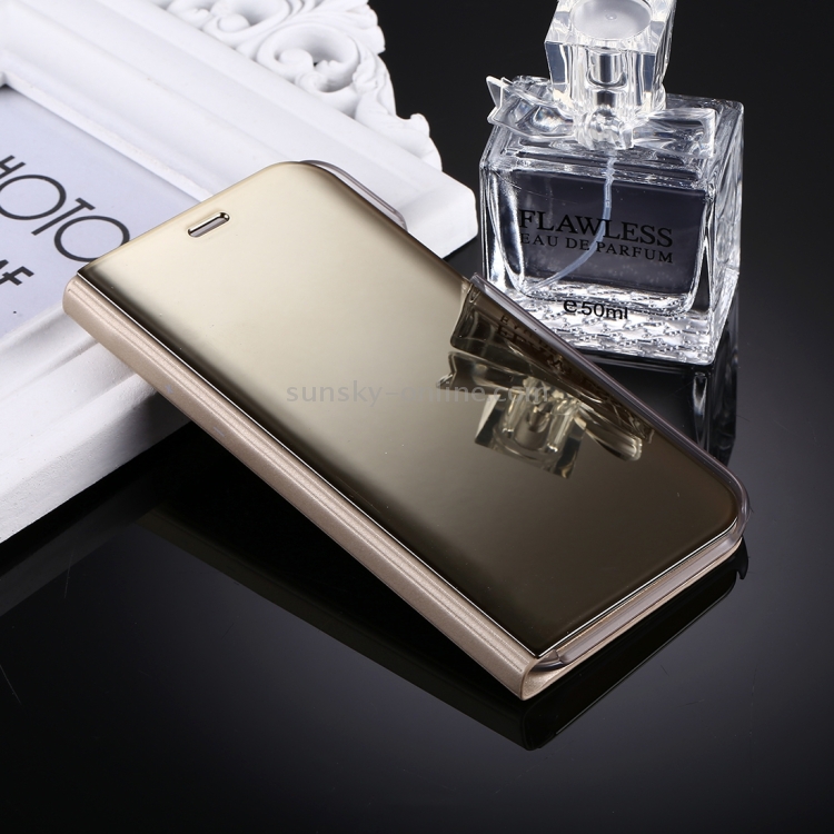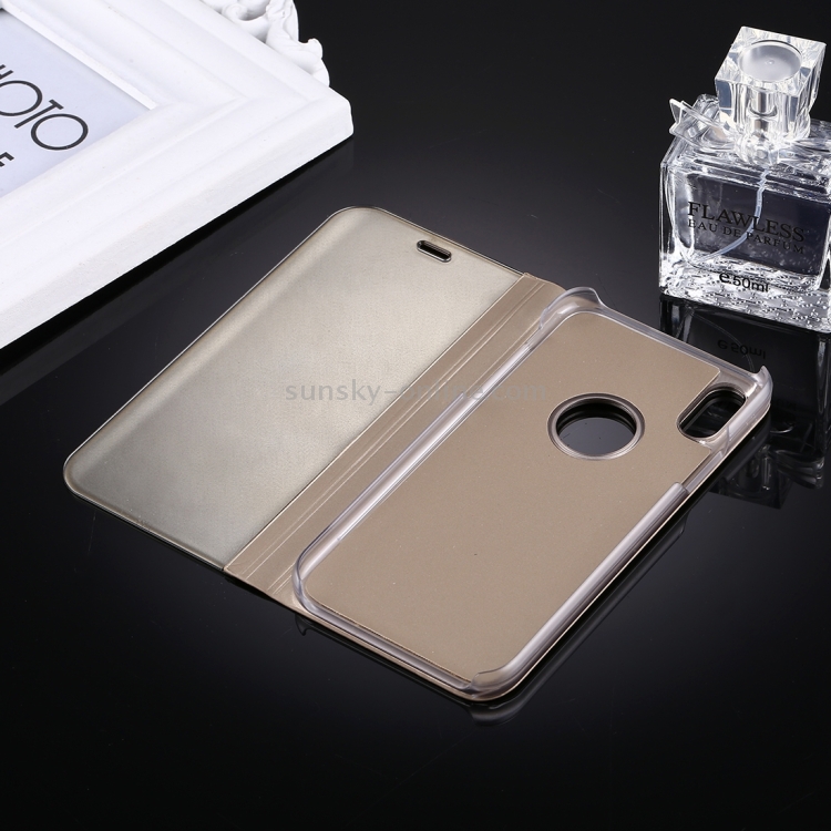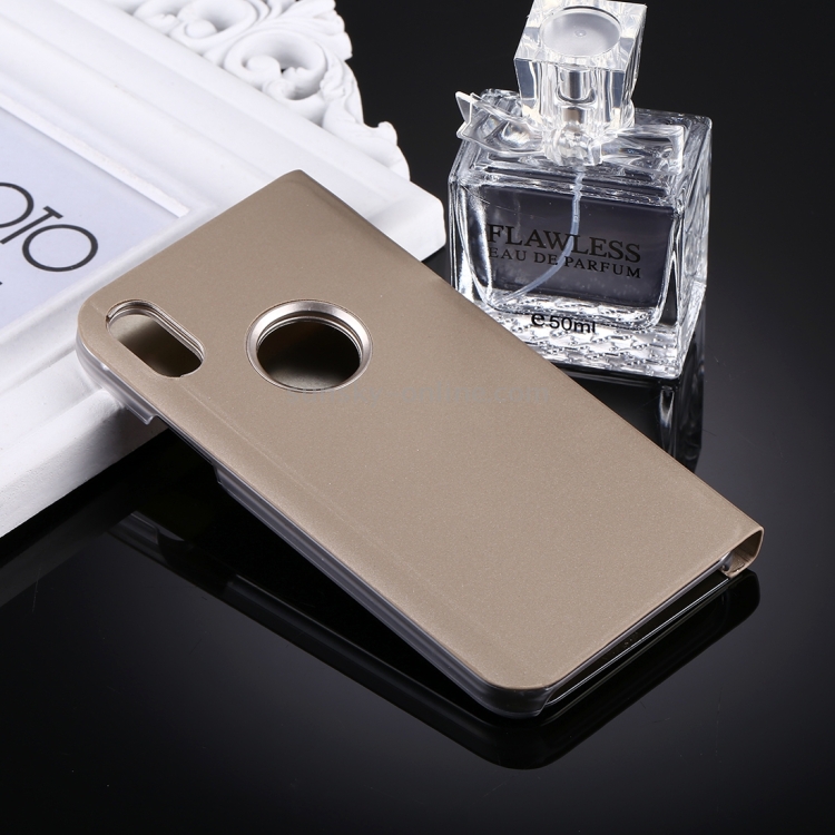 Funda de Cuero para iPhone X Xs Galvanoplastia Espejo con Tapa Horizontal y Soporte (Dorado)
