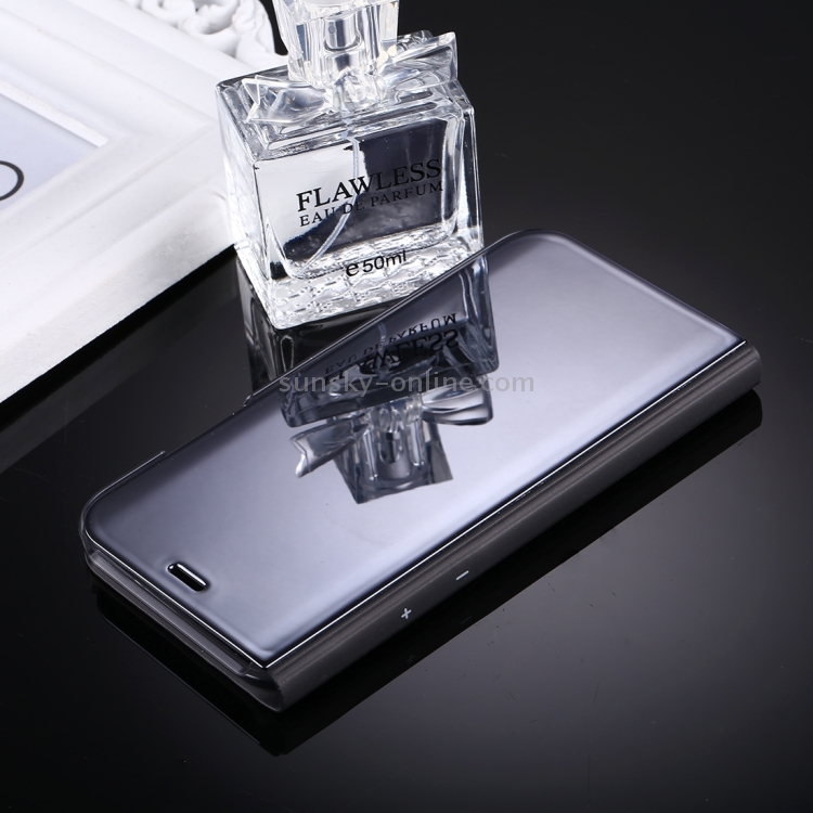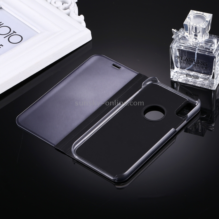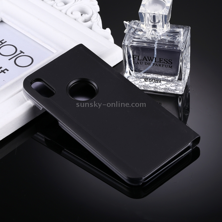 Funda de Cuero para iPhone X / Xs Galvanoplastia Espejo con Tapa Horizontal con Soporte (Negro)