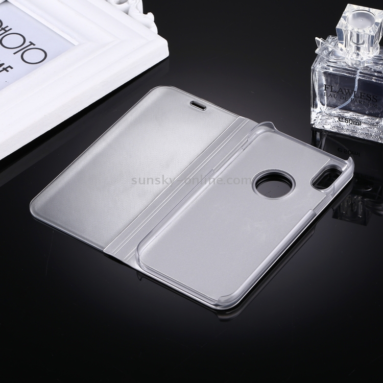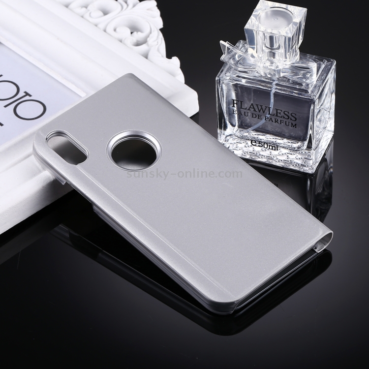 Funda de Cuero para iPhone X / Xs Galvanoplastia Espejo con Tapa Horizontal y Soporte (Plata)