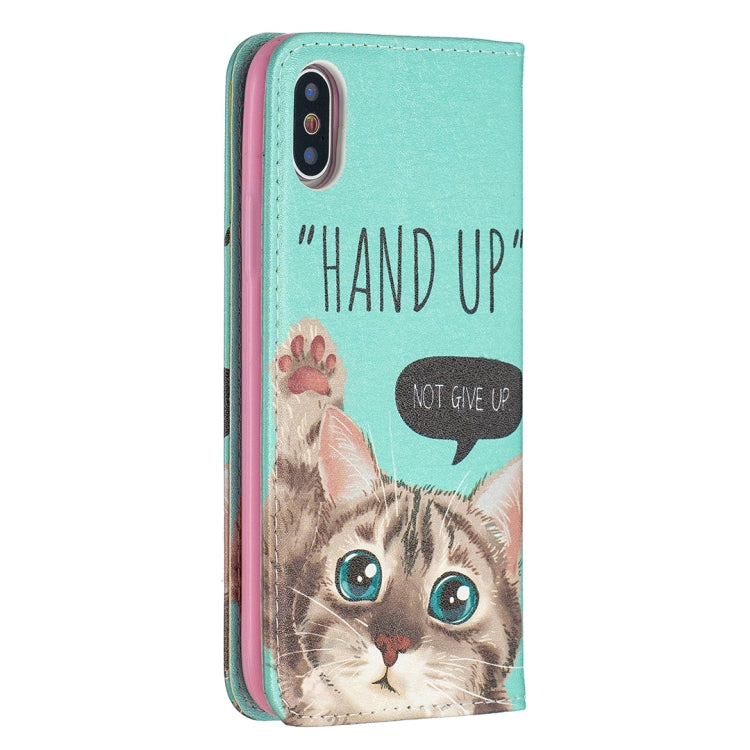 Funda para iPhone X / Xs Cuero PU Patrón Dibujo Coloreado Tapa Magnética Soporte Ranuras Tarjetas Billetera (Gato)