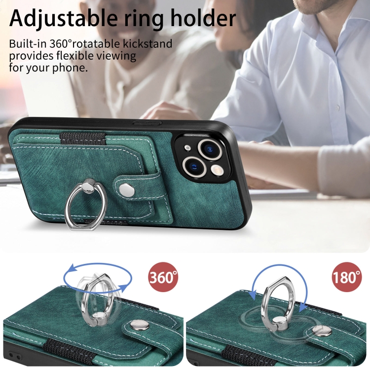 Funda para iPhone X Xs Retro Skin-Feel Ring Card Wallet Phone Case (Verde)