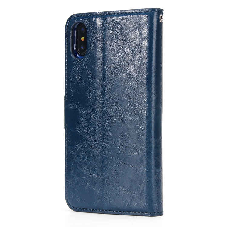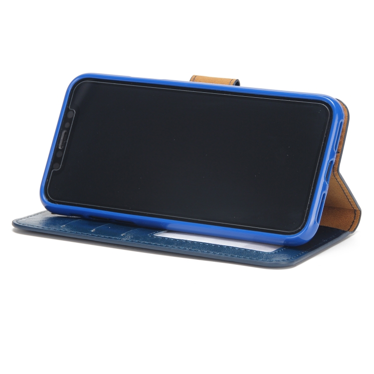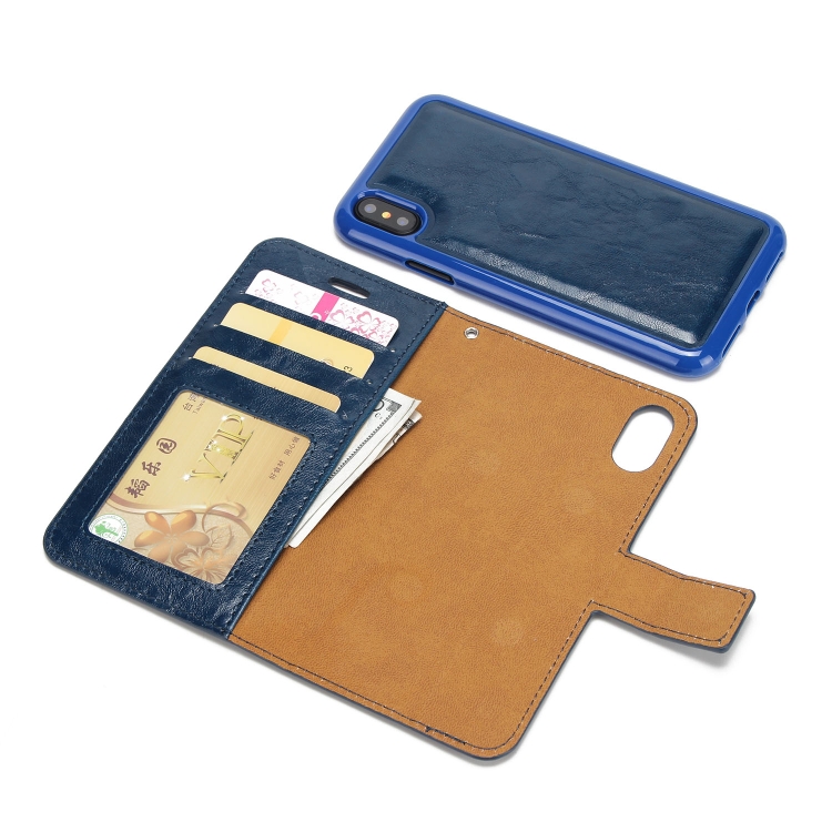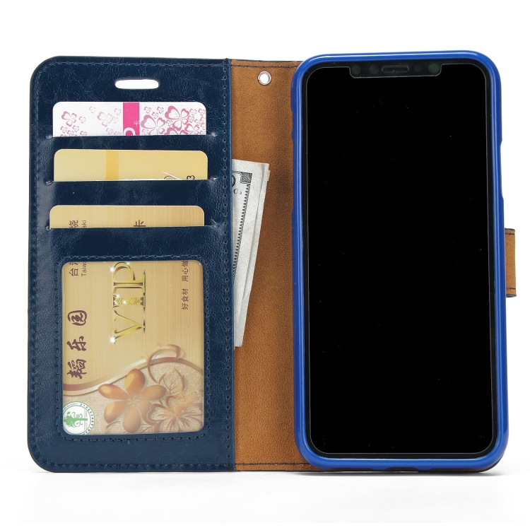 Funda Trasera Magnética para iPhone X / Xs Crazy Horse Cuero con Tapa Horizontal Soporte Ranuras Tarjetas Marco Fotos Billetera (Azul)