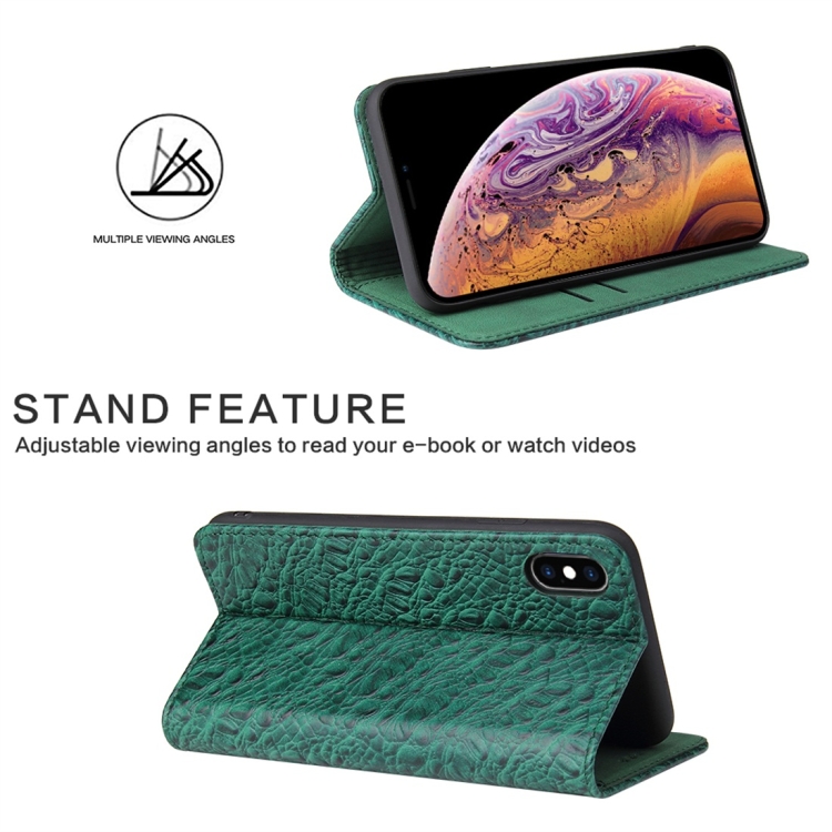 Funda para iPhone X Xs Textura de Cocodrilo PC TPU Cuero Tapa Horizontal Soporte Ranuras Tarjetas Billetera (Verde)