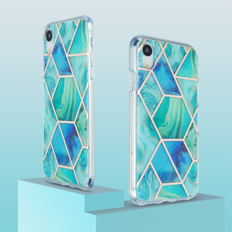 Funda Protectora TPU para iPhone Xr 3D Galvanoplastia Patrón de Mármol (Verde Azul)