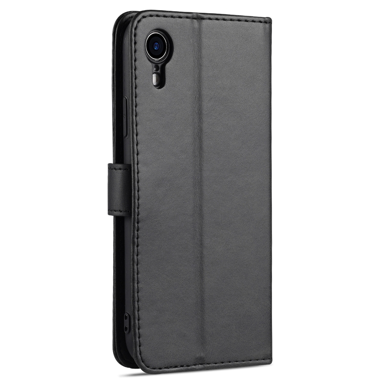Funda para iPhone Xr Azns Skin Feel Calf Texture Cuero con Tapa Horizontal Ranuras para Tarjetas Soporte Billetera (Negro)