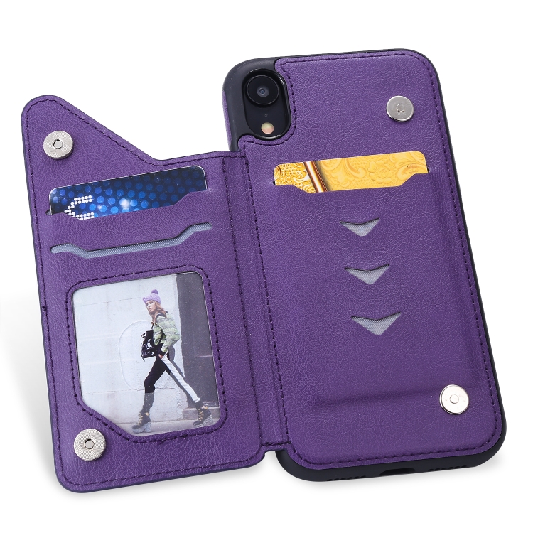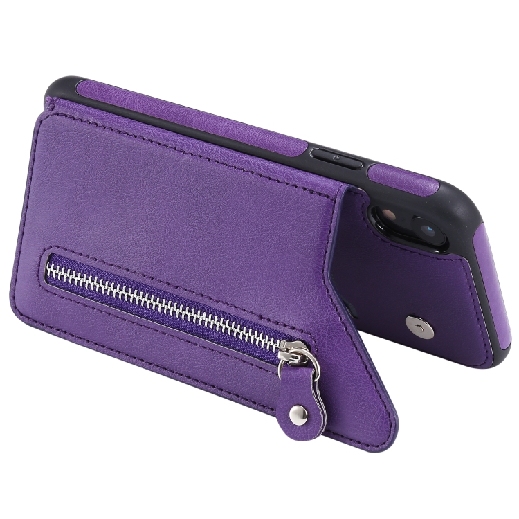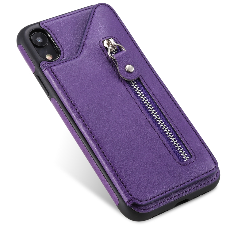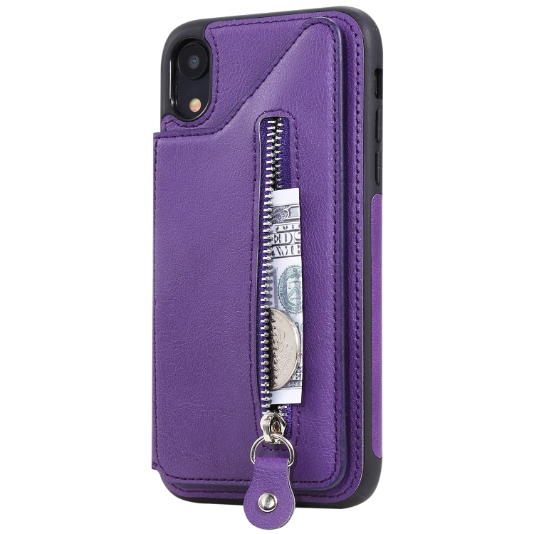 Funda Protectora para iPhone Xr Doble Hebilla Cremallera a Prueba de Golpes (Púrpura)