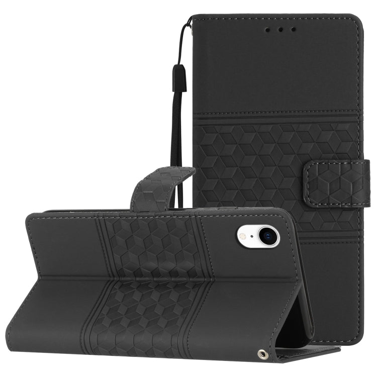 Funda de Cuero para Teléfono iPhone Xr Diamond Embossed Skin Feel con Cordón (Negro)