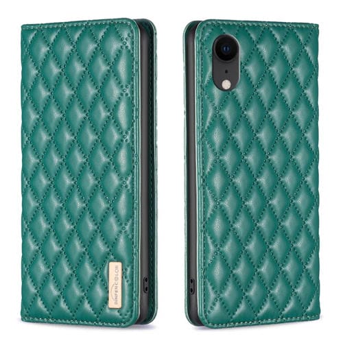 Funda de Teléfono para iPhone Xr Diamond Lattice con Tapa de Cuero Magnético (Verde)