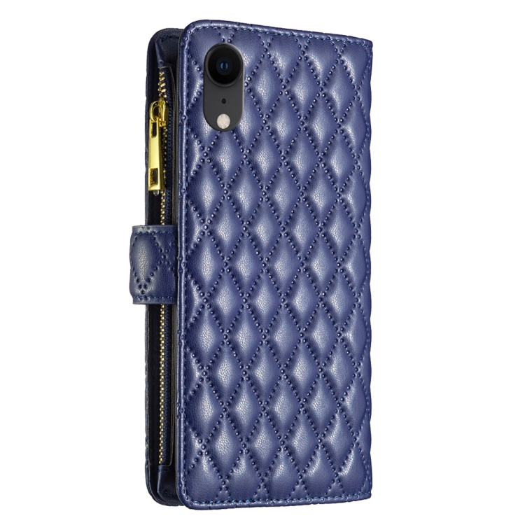 Funda para iPhone Xr Diamond Lattice Zipper Wallet de Cuero con Tapa (Azul)