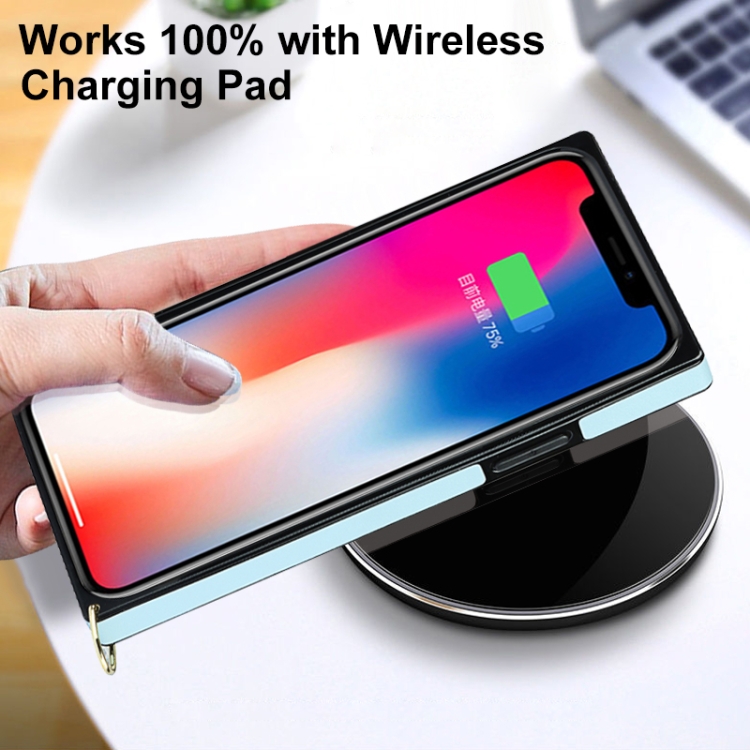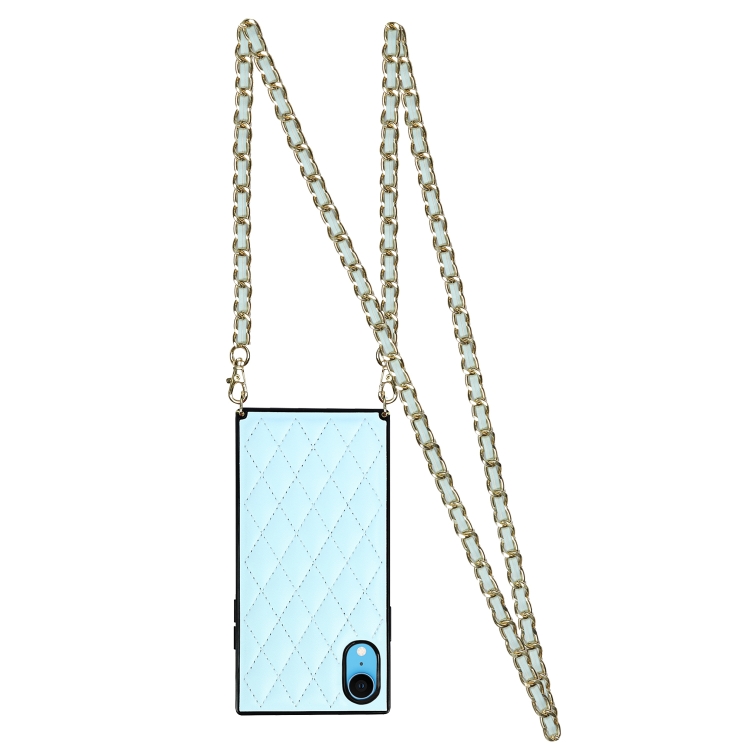 Estuche para iPhone Xr Microfibra Cuero TPU Patrón Rombal a Prueba de Golpes con Cadena (Azul)