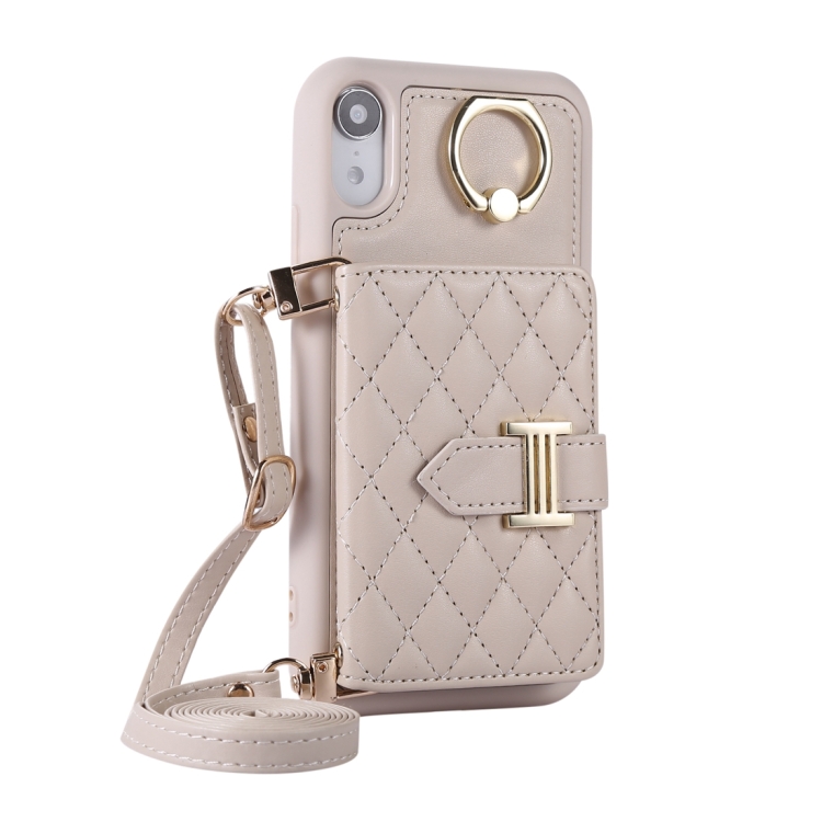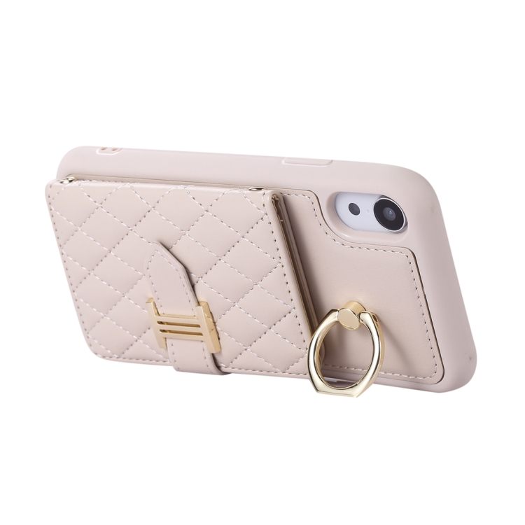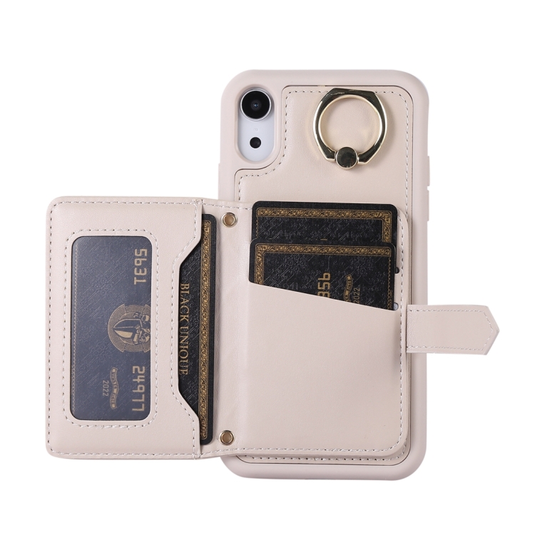Estuche para Teléfono iPhone Xr con Soporte de Anillo y Bolsa de Tarjeta Horizontal con Cordón Doble (Beige)