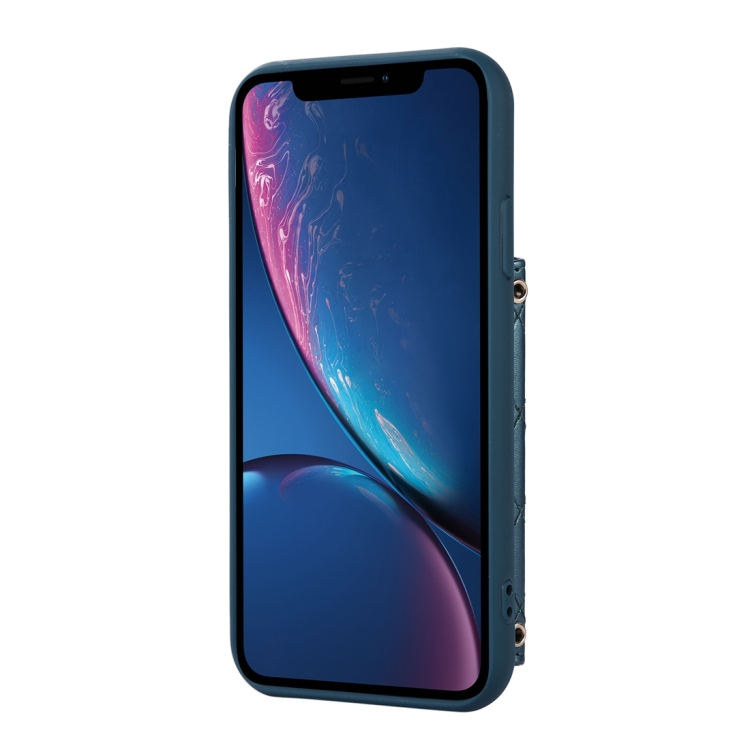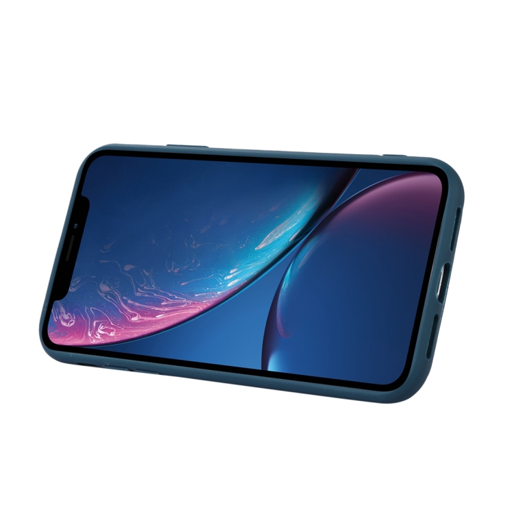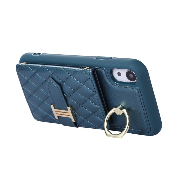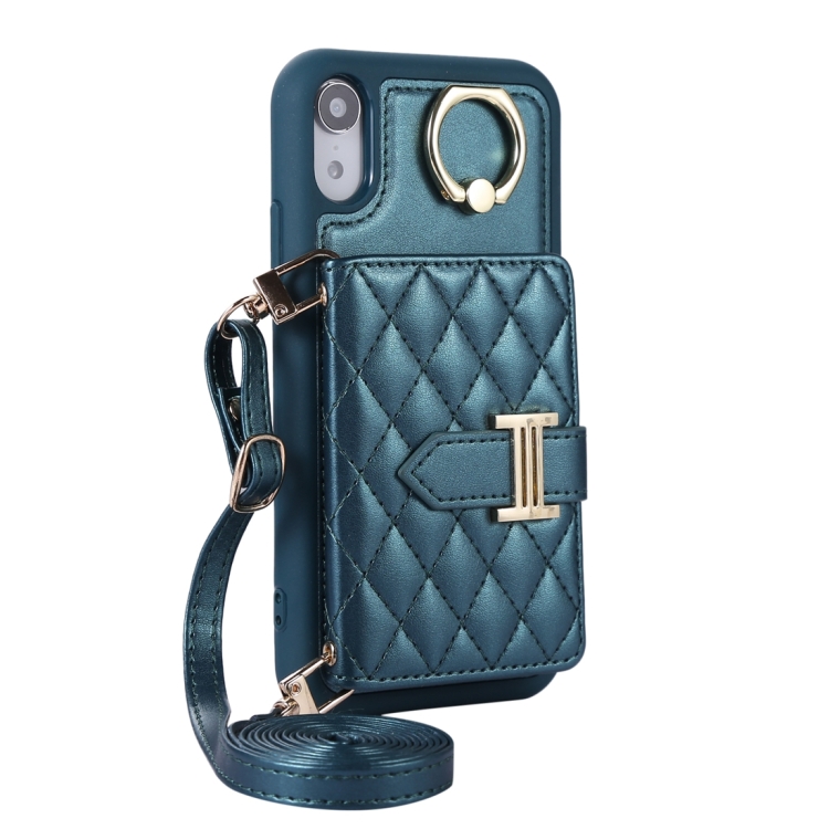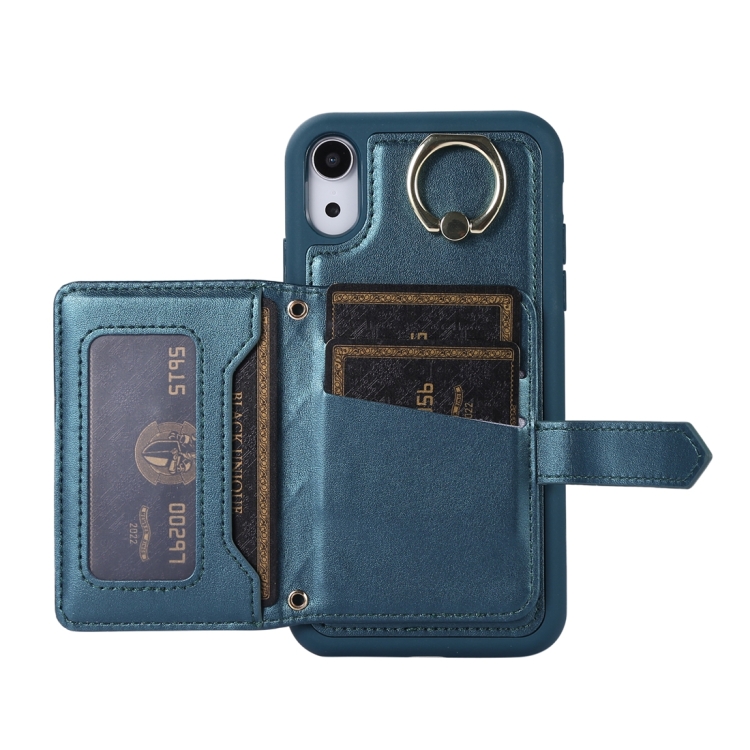 Estuche para Teléfono iPhone Xr con Soporte de Anillo y Bolsa de Tarjeta Horizontal con Cordón Doble (Verde Oscuro)