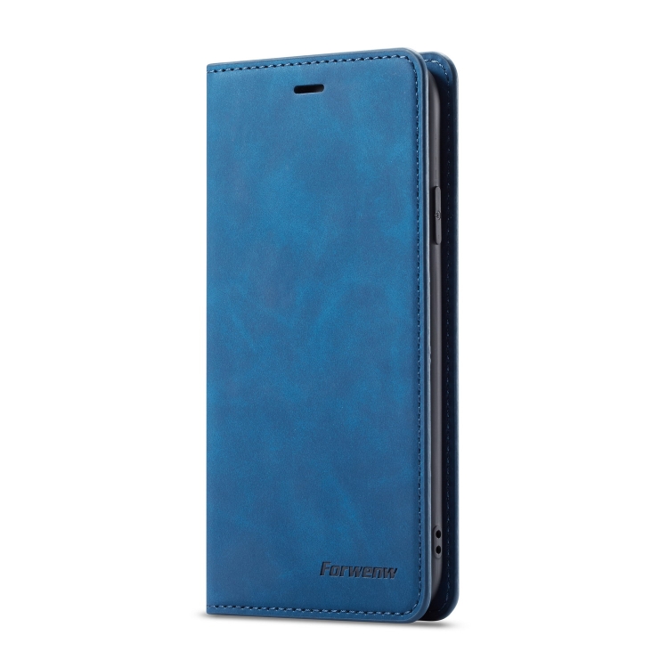 Funda de Cuero FoRWenw Dream Series para iPhone Xr con Tapa Horizontal, Soporte, Ranuras para Tarjetas, Billetera y Marco de Fotos (Azul)