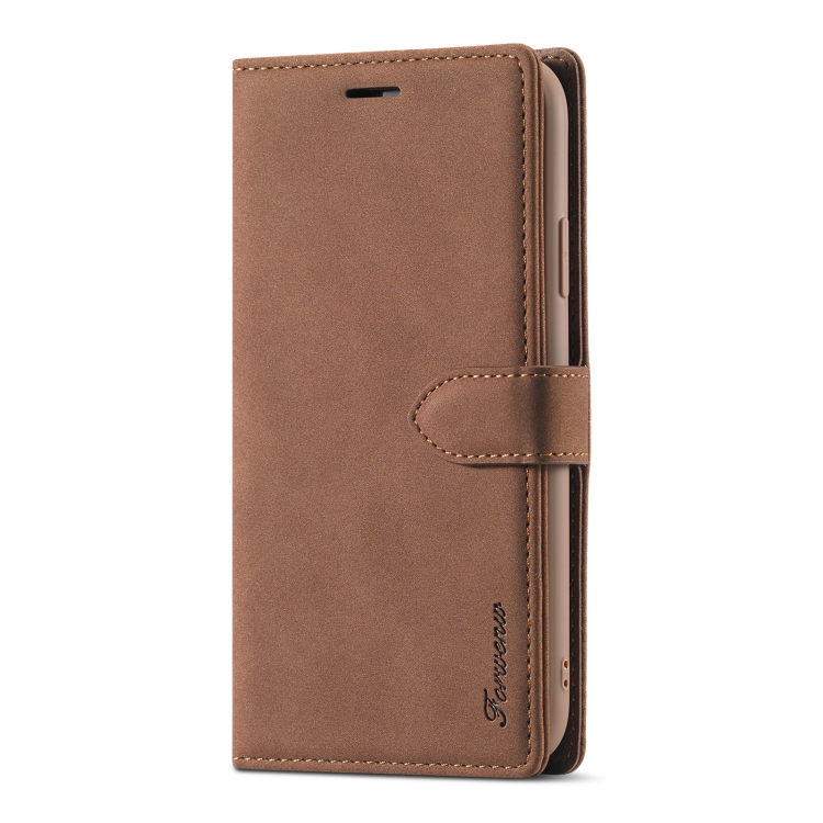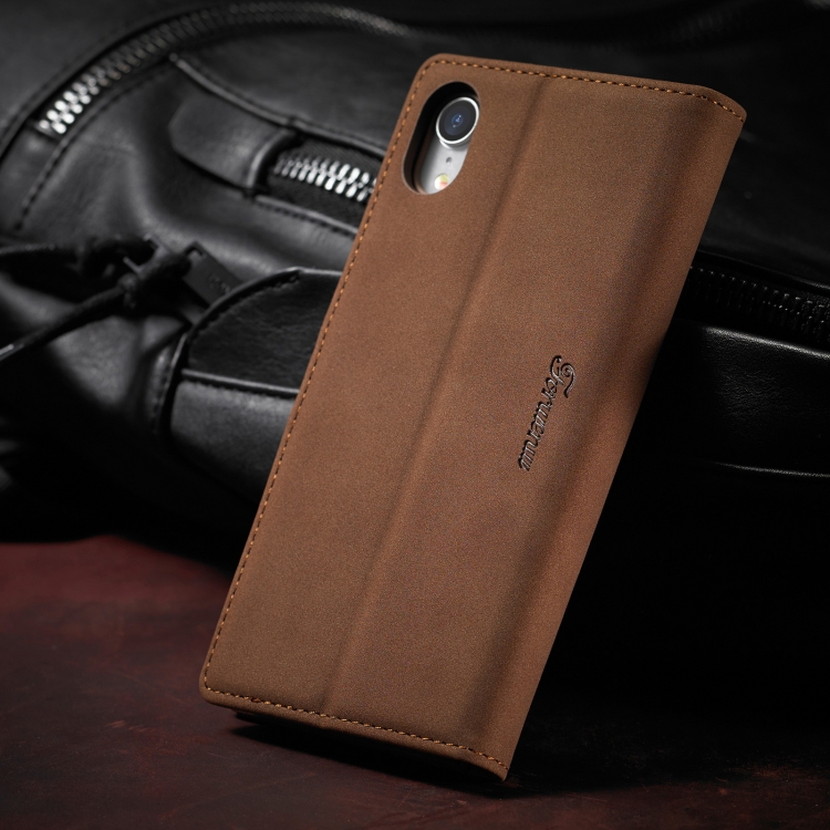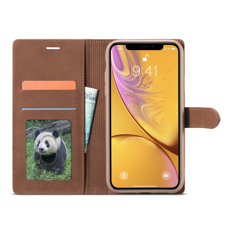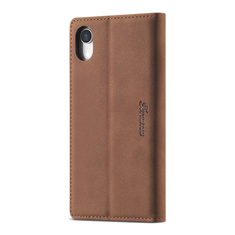 Estuche de Cuero FoRWenw F1 Series para iPhone Xr con Tapa Horizontal Magnetismo Fuerte Soporte Tarjetas Billetera Marco de Fotos (Marrón)