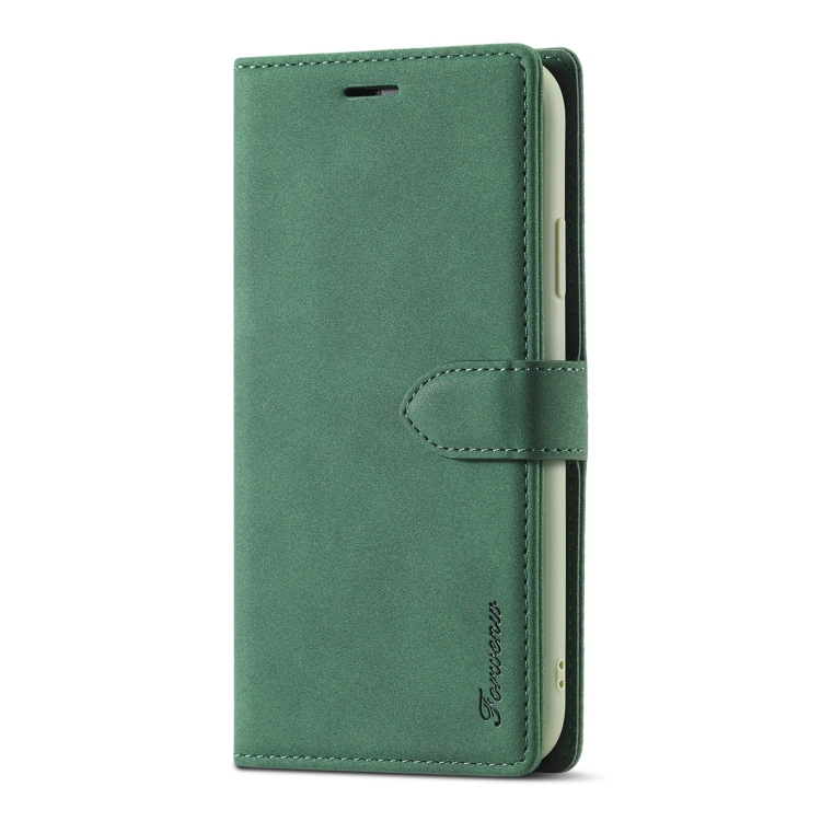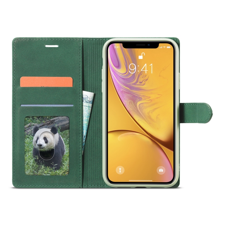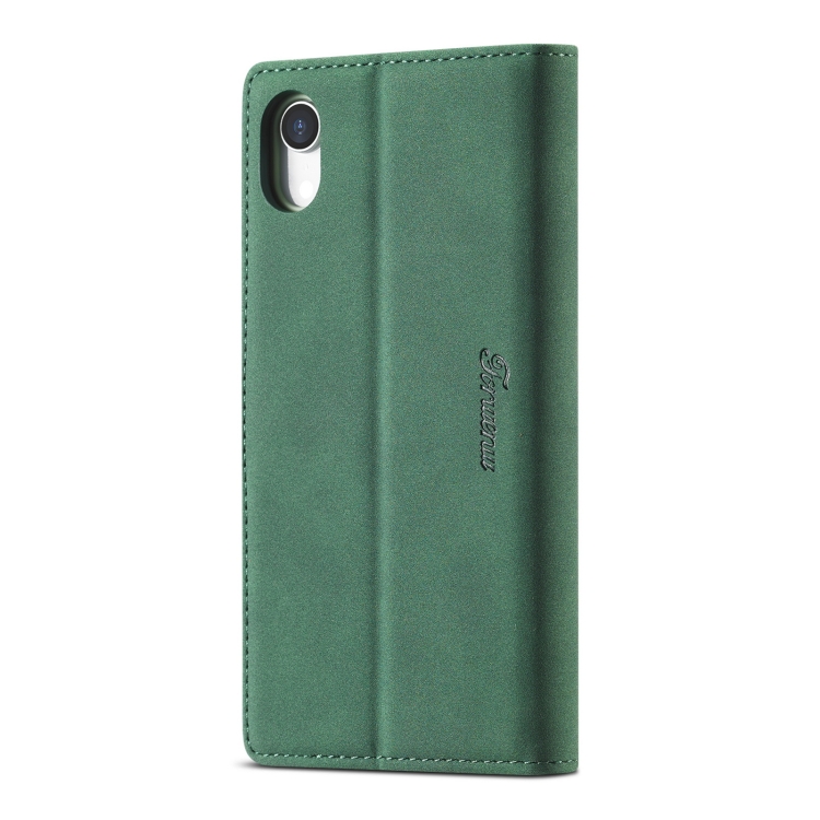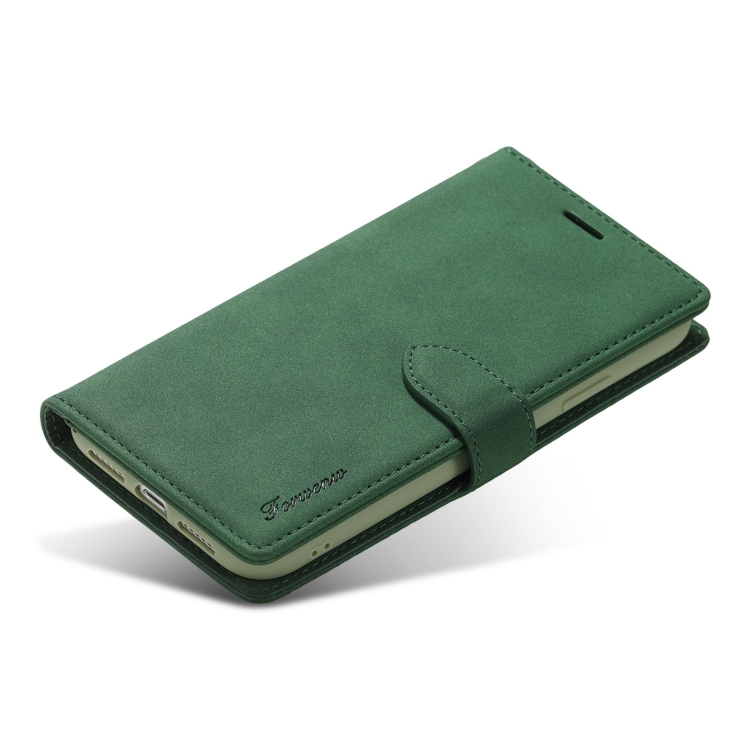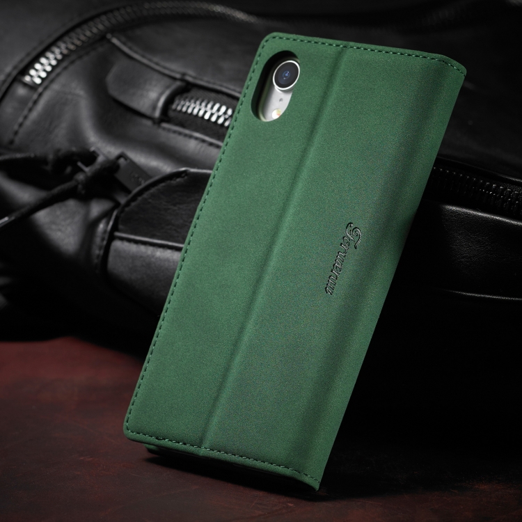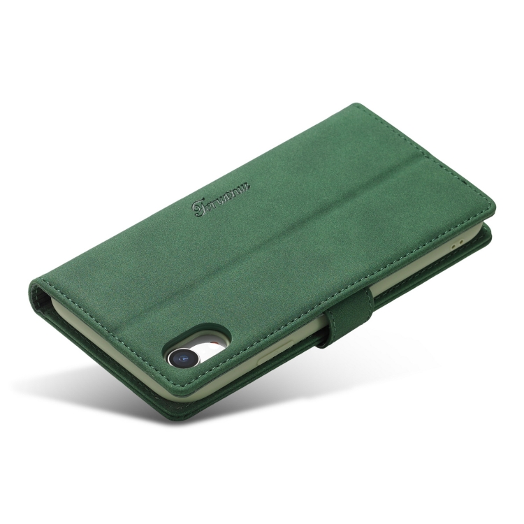 Estuche de Cuero FoRWenw F1 Series para iPhone Xr con Tapa Horizontal de Magnetismo Fuerte, Soporte, Ranuras para Tarjetas y Billetera (Verde)