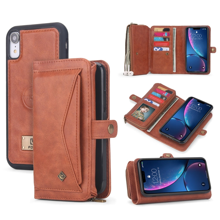 Funda para Teléfono iPhone Xr Cuero con Billetera y Cremallera Multifuncional (Marrón)