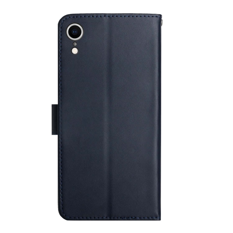 Funda de teléfono para iPhone Xr con tapa horizontal y protección contra huellas de cuero genuino (Azul)