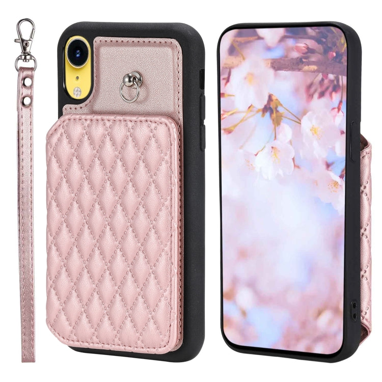 Funda para Teléfono iPhone Xr Grid Texture Card Bag con Cordón (Oro Rosa)