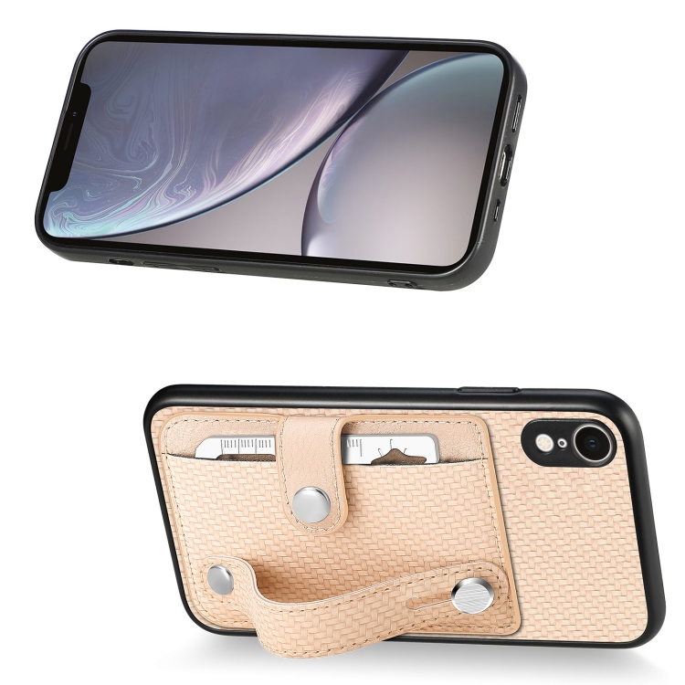 Funda para iPhone Xr Muñequera Kickstand Tarjeta Monedero Contraportada con Herramienta Cuchillo (Caqui)