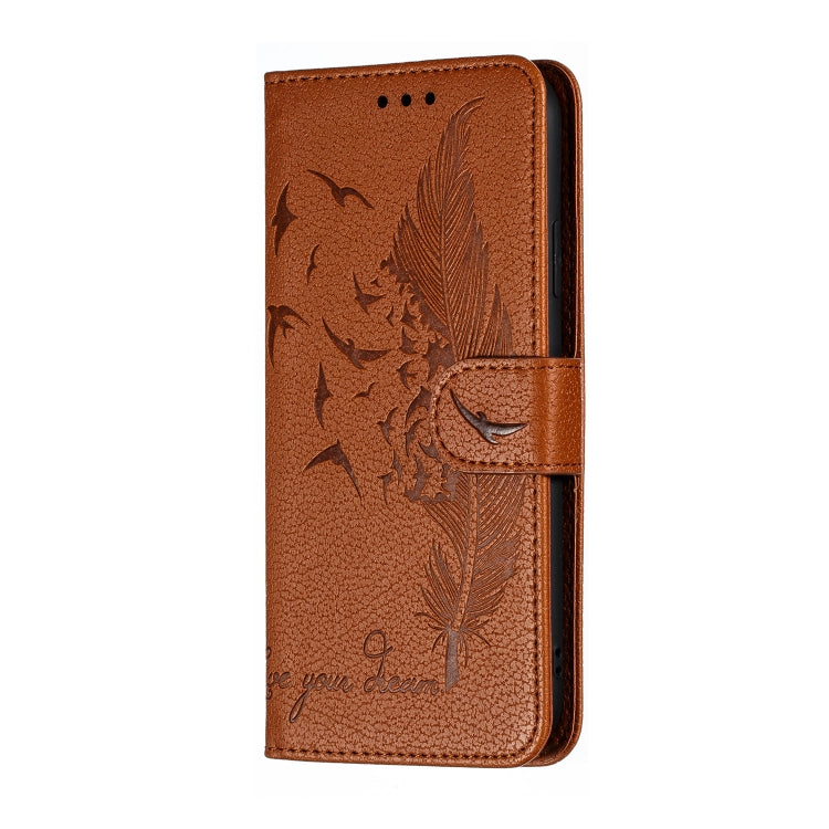 Funda de Cuero iPhone Xr Patrón de Plumas Litchi Textura con Tapa Horizontal Billetera Soporte y Ranuras para Tarjetas (Marrón)