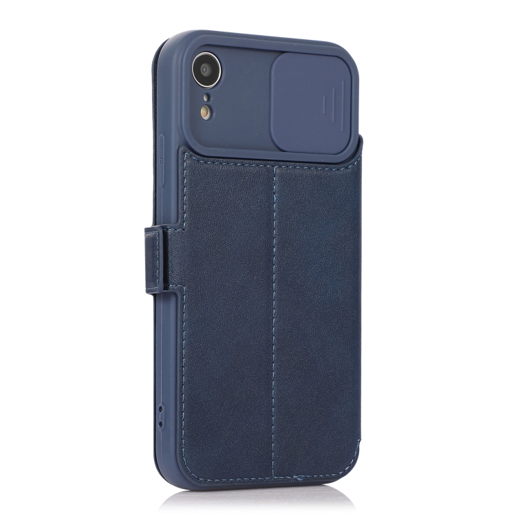 Funda para iPhone Xr Pu Cuero con Tapa Horizontal Silicona Soporte y Ranura para Tarjeta (Azul)