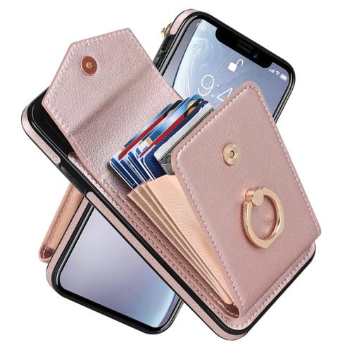 Funda para iPhone Xr Ring Holder Rfid Card Slot (Oro Rosa)