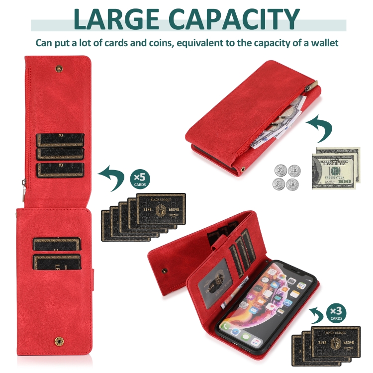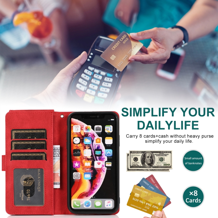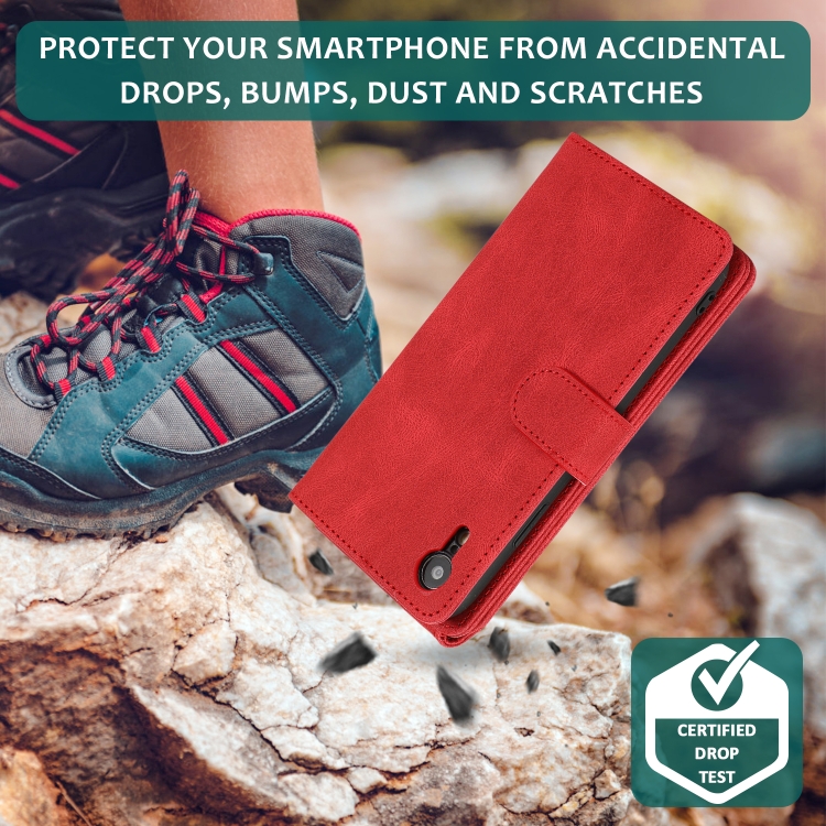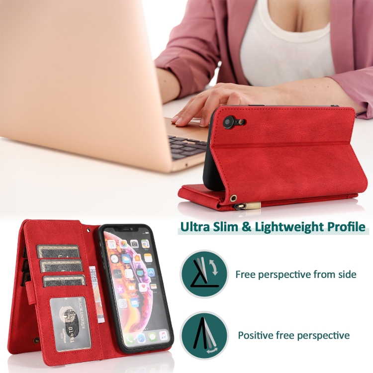Funda para iPhone Xr Skin-Feel Crazy Horse Estuche de Cuero con Tapa Horizontal y Soporte (Rojo)