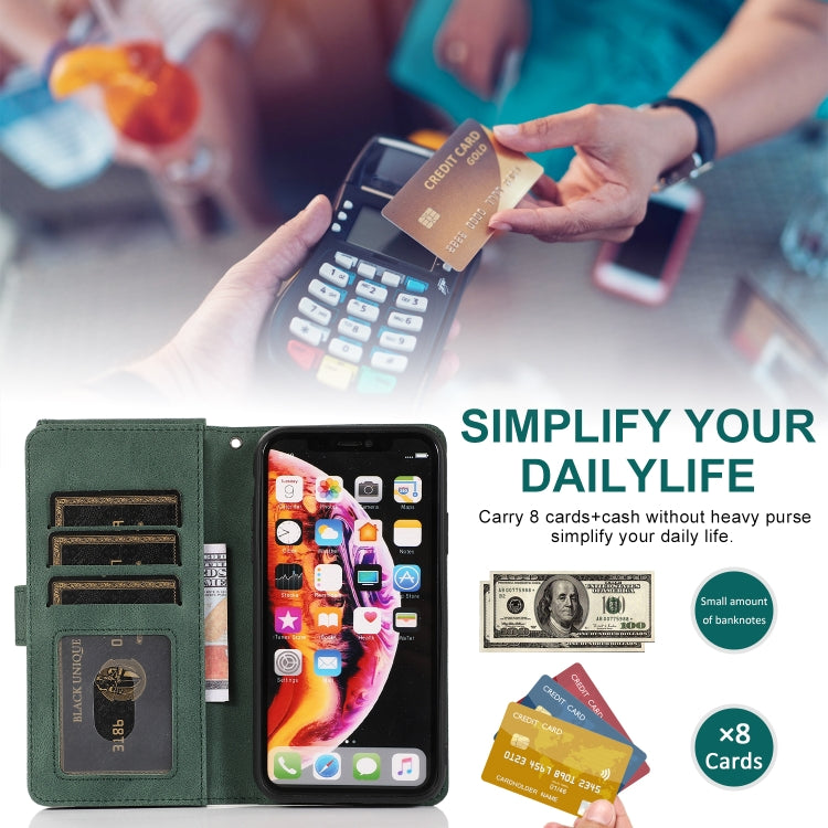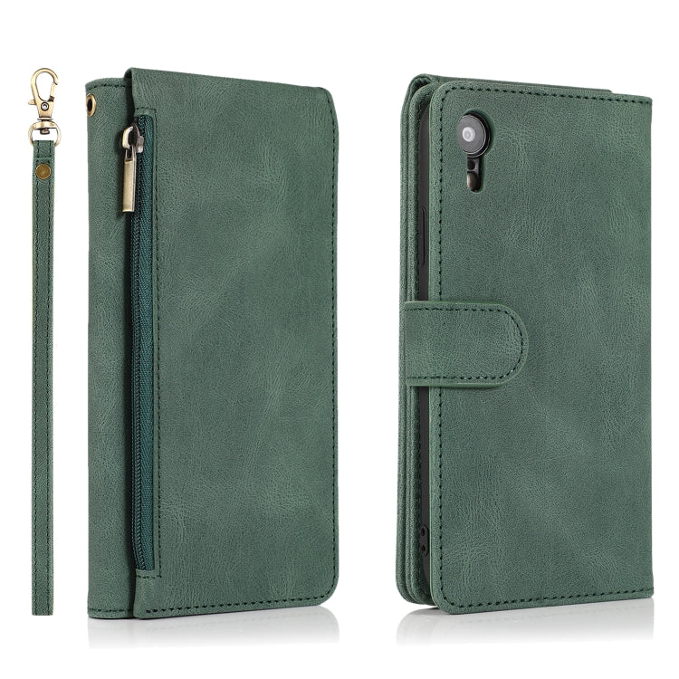 Funda para iPhone Xr Skin-Feel Crazy Horse Texture Zipper Wallet Bag Estuche de Cuero con Tapa Horizontal con Soporte y Ranuras para Tarjetas y Billetera y Cordón (Verde Oscuro)