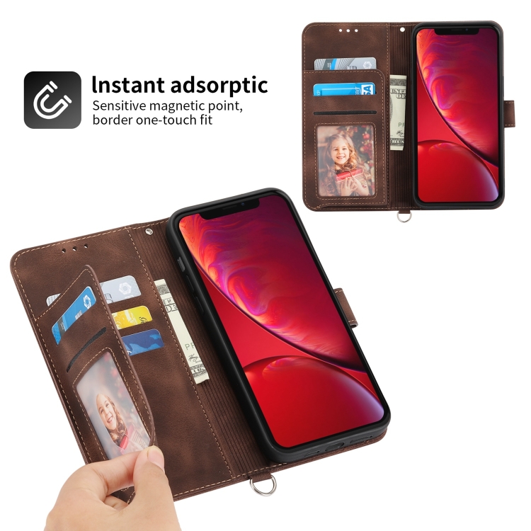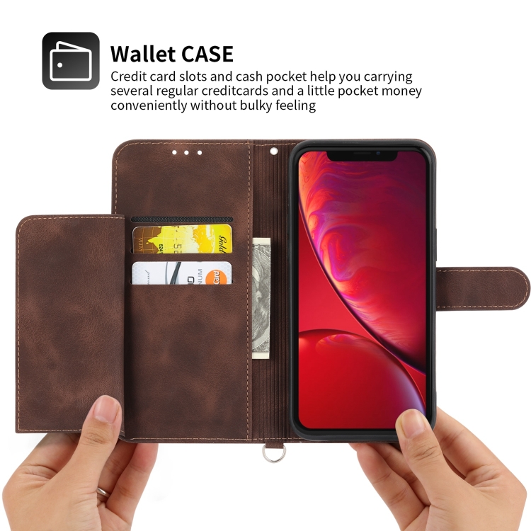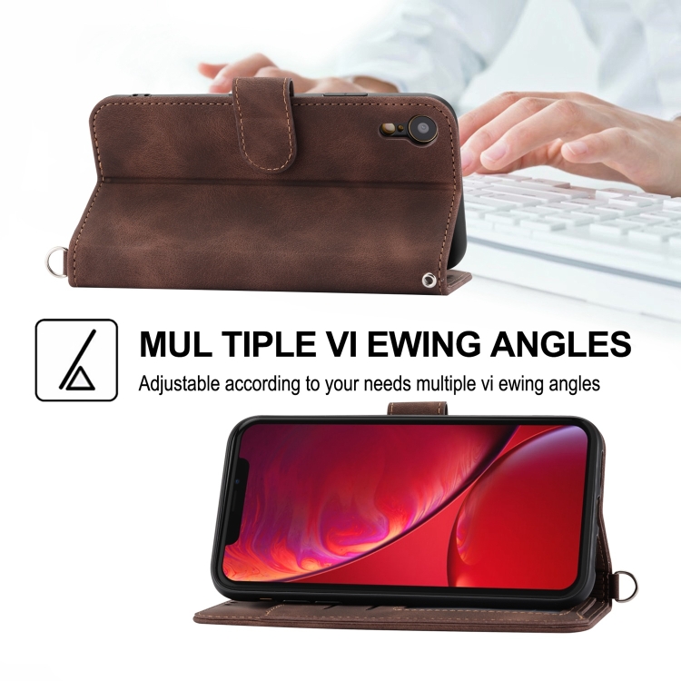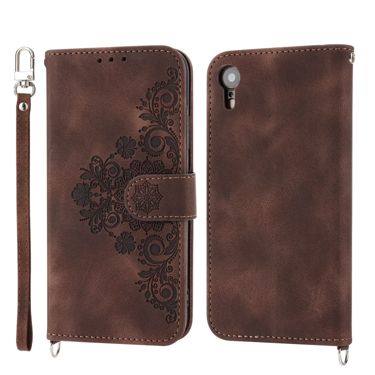 Funda de Cuero Skin-Feel Flowers para iPhone Xr con Billetera En Relieve (Marrón)