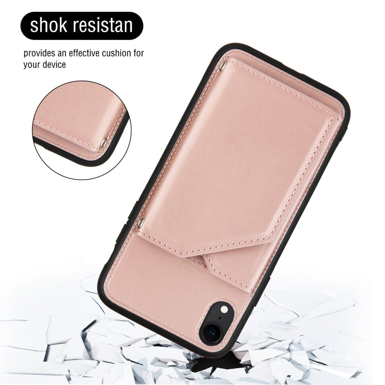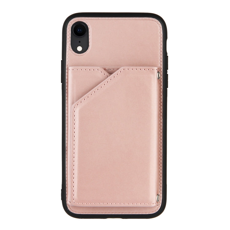 Funda para iPhone Xr Skin Feel PU + TPU + PC Contraportada Estuche a Prueba de Golpes con Ranuras y Soporte (Oro Rosa)