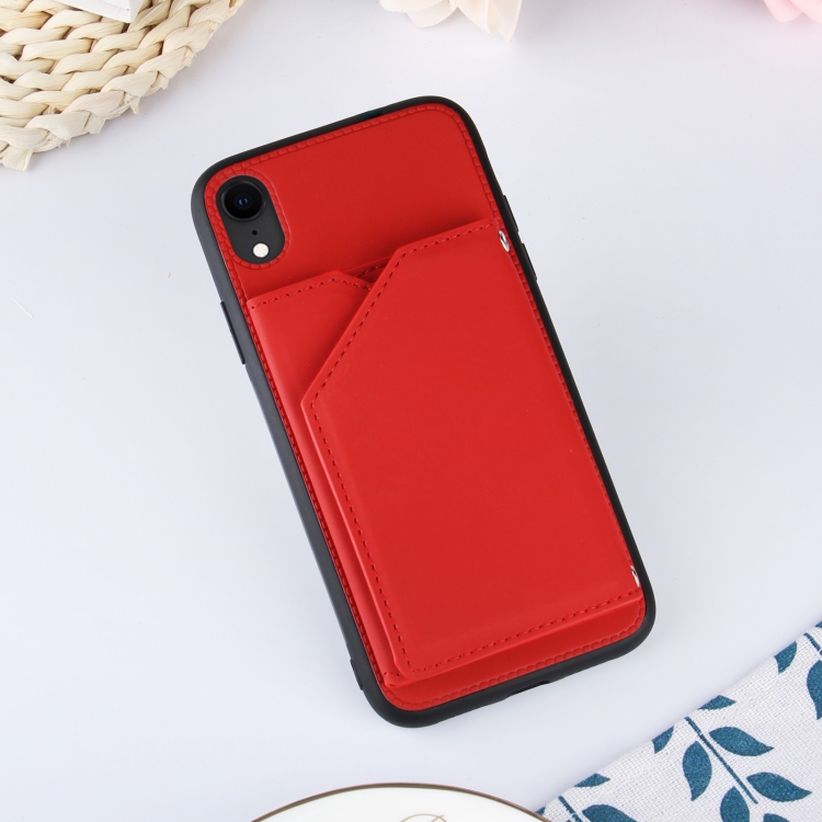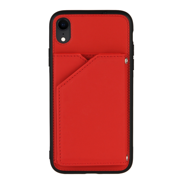 Funda para iPhone Xr Skin Feel PU TPU PC Contraportada a Prueba de Golpes con Ranuras para Tarjetas Soporte y Marco de Fotos (Rojo)