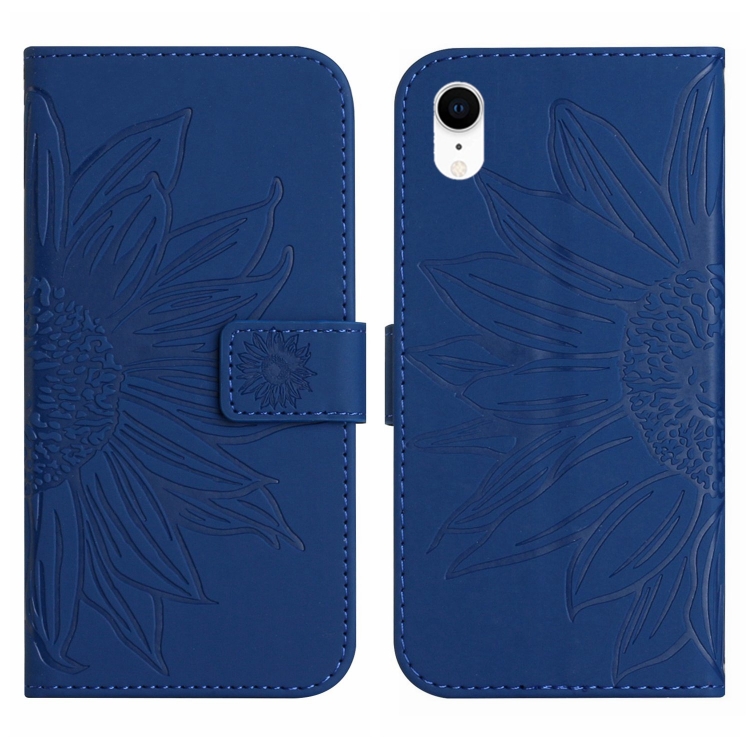 Funda de Cuero para iPhone Xr Skin Feel Sun Flower Pattern con Tapa y Cordón (Azul Oscuro)