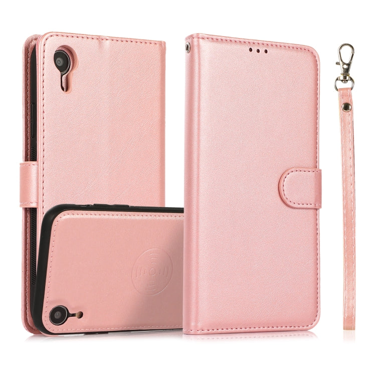 Funda para iPhone Xr Textura de Becerro 2 en 1 Cubierta Trasera Magnética Desmontable con Tapa Horizontal y Soporte (Oro Rosa)