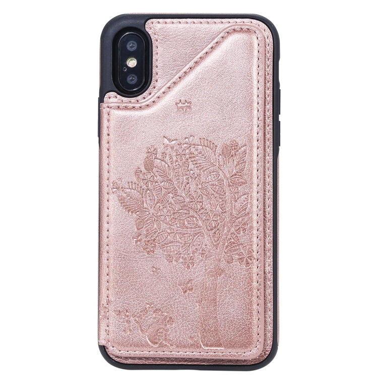 Estuche protector para iPhone Xs Cat Tree con patrón en relieve, a prueba de golpes, ranuras para tarjetas y marco de fotos (Oro Rosa)
